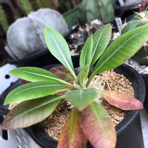 パキポディウム(恵比寿笑い)です。発芽後約7週間(播種後52日目)。やはり最初の変化から何だかあまり変化がない様です。水のやり過ぎでまたひと苗枯れました(4〜5ml/1Dayくらいが命取りに…)。秋蒔きは難しいですね…。 ※苗の大きさに応じた水分量があり、バラつきに応じた水分量が適当です? 幼苗の水控え時期なんて聞いたことがないですが、湿度管理しながら持ち堪えてもらいます。 この分で、冬を乗り切れるのかな^^; 気温12℃ 室温計20℃ 地温計23℃ 湿度計70% やる気のある写真はまた来月だな。生長しているかな^^;? 恵比寿笑い https://greensnap.jp/post/1421853?ref=dsh_i