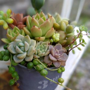 初めてお迎えした多肉の寄せ植えさん😊 お気に入りのパン屋さんにたくさん飾られていて、しかも買える😍 しばらく見かけなかったので、 片してしまったのかなぁと残念に 思っていましたが、 店員さんに聞いたら、 今日からまた始めたんですとのことで *。٩(* ॑ᗜ ॑* )و*。ヤッター どれも可愛くて迷いましたが😆 色々な種類が詰まっていたこの子に💕 今年は多肉コーナーも作りたいと 計画してるんですが、 全然わからないので、 皆さんから勉強させてもらいたいと 思ってます✊😄 ②の多肉畑は、伸びてしまった セダムをカットして、さしました✂️😊 この作業も初めてでしたが、楽しくて、 無心で熱中しちゃいました😆 パン屋さんに行ったら また買ってしまいそうです( ⑅ˊᵕˋก )꜆꜄꜆꜄꜆
