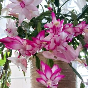 🍀🌻🪴💐🌹🌻🍀 🍀🩷デンマークカクタス🩷🍀 (シャコバサボテン)🩷🍀 やっとデンマークカクタスが先始め ました(まだつぼみが多いです) 💐デンマークカクタスの花言葉は(美し 眺め)(冒険心)(命の喜び)す、葉っぱ の形がシャコに似ていることからシ ャコバサボテンと呼ばれるようにな りました 💐デンマークカクタスはサボテン科ス クルンベルゲラ属 タイプ 多年生の多 肉植物です 💐草丈は15~40㎝で開花時期は冬、 短 日植物のため、日が短くなると花が 咲きます 💐シャコバサボテンは品種改良により 100種類もあると言われており、花の 色や形も種類によって異なります 🍀🌻🪴💐🌹🌻🍀