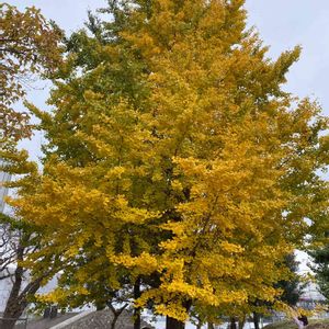 イチョウの木 途中経過でございます💛 ここまで黄色に色付いてきました🥰 下まで行くと、見上げる大きさ😃 風に揺れるイチョウの葉が綺麗ですよ〜💛✨💛✨