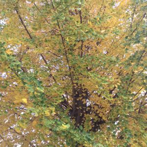 イチョウ イチョウ科イチョウ属。 原産地 中国。 台風の影響かあまり黄色くない。