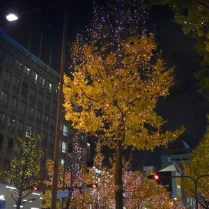 イチョウ イチョウ科イチョウ属。 原産地 中国。 古生代 2億年前から誕生した生きた化石。 塩害でやられて枯れているのを心配しましたが、やっと紅葉し始めました。 自然は循環しているので、影響による被害が心配ですね。