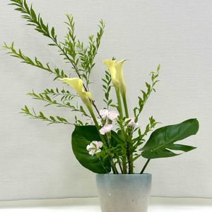 こんにちは😃 今回の生け花💐 背高ノッポのパンパスグラスさんは茎の部分をなるべく見せないように生けてみました🌾🌾 クッカパラちゃんはいつも位置づけするのに悩まされていますが、手直ししていただいて、いい感じに収まりました🥹