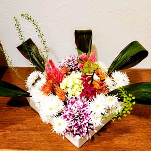 こんにちは😃 今回の生け花💐 ダリアさんの位置を決めるのに悩みましたが、ケイトウさんといい感じになって結果オーライ👌でした🐔 前回の教室からお盆休みを挟んでの久しぶりだったので、先輩生徒さん達とも話しが弾みました😆🎶🎶