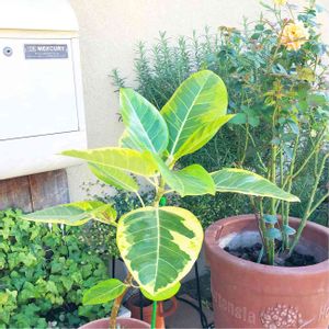 フィカス アルテッシマの挿し木。 ずーっと外置き。 夏の炎天下にも負けず、葉焼けもせず!