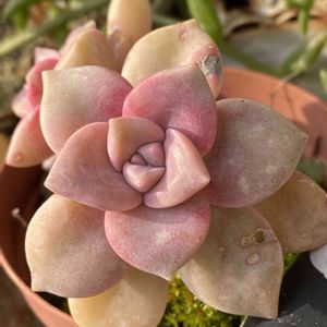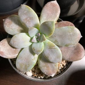 グラプトペタルム属 ペンタンドルムです。 多肉は雨晒しなので霜にやられてしまった😅 この子はマシな方かな❓ 名前が覚えられません😆