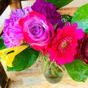 おはようございます❤︎ 切り花もらったよ! 今朝はビビットカラーで♥️💕 今週もよろしくお願いします🤲 今日も頑張りましょう🤗