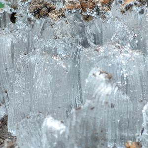 霜柱𖤣𖤣𖤥 土が柔らかく適度な水分を含んでいる証拠❄️ 踏むとコリコリ面白い♪ 子供の頃、競って踏んで歩いた記憶があります( ˘ᵕ˘ ).。oO💕 朝日が当たると、みるみる溶けて 崩れていくので、ホンノ少しの 美しさです˚✩∗*゚🌟⋆。˚✩⋆。˚✩✨