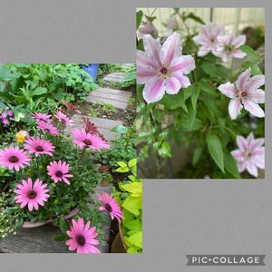↗️今年1番元気なクレマチス お花が大きくて沢山咲いてます🤗 ↙️2年目のオステオスペルマム 沢山のお花でモリモリになりました😍