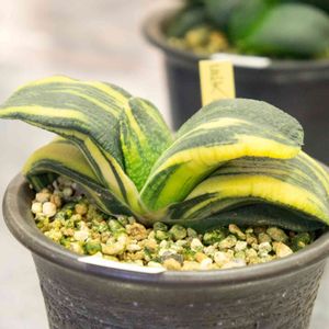 臥牛錦 斑の入り方が最高です。 特選株を頂きまして、 その時の葉はもう無いのですが流石は特選、 新葉が美しい✨ でも、このカラーリングってカボチャ…