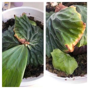 実生2年目のデカリーちゃん。去年の葉が落ちずについたまま新芽が出てきましたー可愛いー