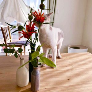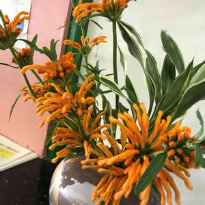 レオノチス、フワフワしててかわいい。あとは庭のローリエとアイビーをさしました。