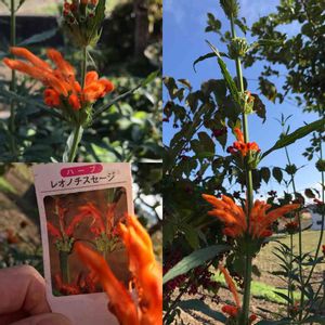 ‘レオノチス’ が咲き出しました🧡🧡 別名 ライオンズ イヤー シソ科 花期 10〜11月 草丈 2m (切り詰めOK) 常緑宿根草 耐寒温度 0 度 霜除け セージのつもりでいたのですが、ちょっと変わっていますね😊 メキシカンセージのように、放射状に長くなるようです。 昨年地植え、防寒対策をして冬越し、一年後にやっと花が見られました🧡🦁👂🧡 🌟遅くなりましたが、はじめての「みどりのまとめ」 国営ひたち海浜公園のみはらしの丘のコキア❤️🎶を投稿しましたのでご覧になってください🙏