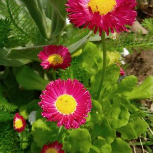 一昨年の秋に種まきしたコ 昨年春に開花して夏も冬も越してくれました! デージーの冬越しは初めてです😊 うれしい🎶