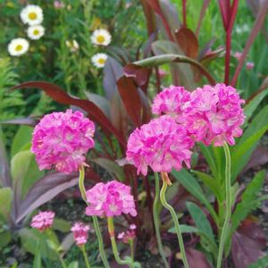 今年も咲きました😊 昨年種まきしたのはまだ小さくて 咲くのは来年かな? 左下の小さなピンクのお花は ウスベニカノコソウ💠 ペンステモンがさらに伸びています❗