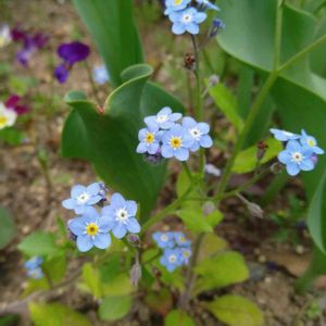 チューリップが終わる頃 忘れな草が咲きだしました😆 来年は高さやタイミングが合うようにしたいなぁ それにしてもワスレナグサ小さい😅