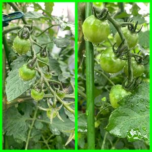 ミニトマトが、たわわに実ってます!! その中に色付き初めた場所が…… 徐々に食べ頃になって行きますねd(^_^o)