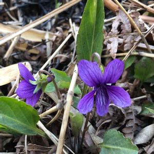 来年春に向けて、スミレの勉強のため、以前の画像からupします。 先日、撮影したスミレとコスミレの交雑種の疑いの近くで2019年3月撮影。 葉の形状は細長く、葉柄に翼が見られ、スミレに特徴的です。 花びらの側弁にも、毛が生えています。