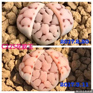 C225花紋玉 娘が脳みそと呼ぶ花紋玉… 私はとっても好きです‼️ 来た時と現在を比べると 外葉にシワが…。 何度見ても、この模様と色が 良い味出してる〜(∩˃o˂∩)♡
