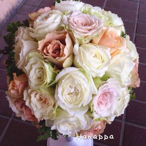 お色直し用のブーケ☺️ラウンドスタイルで、オフホワイトのドレスに合わせて👍😊 朝一番で椿山荘までお届けして来ました✌️😀 早めに出たけどまさかの予想以上の渋滞具合😱間に合って良かったぁ👌😚花嫁さんはお化粧中でしたがとでもキレイでした😍