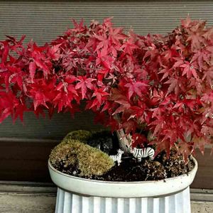 🍁 もみじ盆栽 🍁🍁🍁 購入して3年目のもみじキレイ🍁💦💦💦 シマウマ🦓の親子も😃🍒😃