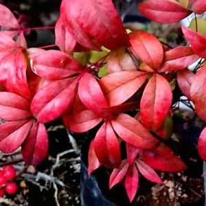 放置状態の南天🤗💦💦💦 梅の盆栽の脇に昨年購入したポットのまま放置状態でも… 根性でキレイに紅葉しています😉(´▽`;)ゞ❤️😉➰💕〰️🌳