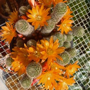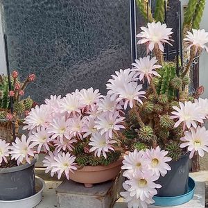 『レブチアの何か』 100均サボテン 花数がどんどん増えてきました 今日は久しぶりに☀ 他のサボさん達も沢山咲きそうです