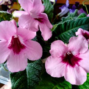 ストレプトカーパス種まきっ子 開花途中だけどペンネと並べたら、花の中心の色が似てる! エンゼルの子だと思ってたんだけど…、