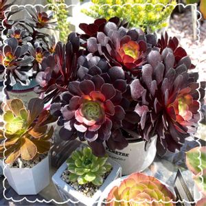 🏷9日は黒法師の日に参加させてくださいね😊 ⬅️メル○リで「チョコレート」と言う 名前で狩った子。狩ったときは、カット✂️苗で、エケベリアとしてでていました。 頭だけで丸かったので、アエオニウムに見えませんでした。成長してきて「黒法師やん⁉️」と、びっくりしました。 ➡️松阪フラワーセンターでお迎えした寄せ植えに入っていた子です。 一時期、左の子とほぼ同じ姿でしたが、 置き場所違うとこんなに差がぁ〜