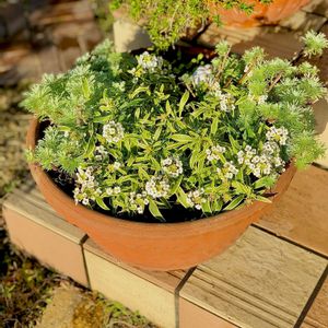 アリッサムとももかの うみとピーチの寄せ植え 下に黄色のチューリップ球根が植えてあります♡春が楽しみ⤴︎