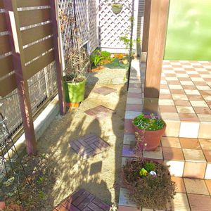 シェードガーデン側 奥のフェンスにクレマチスモンタナちゃん誘引しました。 綺麗に咲いてくれるかな⁉︎ 楽しみです♡