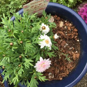 サントリーフラワーズ ボンザマーガレット さくら🌸 購入時はお花が咲いていなかったので、とても迷いましたが、昨年花友さんの写真を見て気になっていたさくらを選びました。 やっと見つけて選んでいる間に、どんどん購入される方々がいらして、人気の高さを実感❗ 定植から1ヶ月、最初はお花が白かったので 「白なの?」 と不安でしたが、中央から少しずつ柔らかいピンクに変わってきました🌸 とっても可愛い色合いです。 沢山咲くのが楽しみです😍 孫からプレゼントされた?酷い風邪😷をひき、長く高熱が続き咳で苦しみました。 流行っているようなので、皆様気を付けて下さいね🤧
