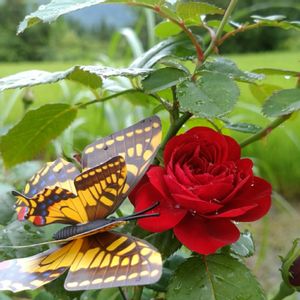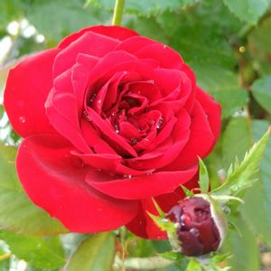 多分庭のバラの中では最年長の御老体だと思います。 勢いのあった頃は房咲きの暗赤色のブーケが株全体を埋め尽くし、道行く人々は足を止めて「わーっ❣️」と歓声を上げていました。 もうベイサルもサイドもシュートを上げることもないですが、少しボリュームダウンしたブーケを咲かせてくれます。 頑張れ‼️ 6月撮影📸のものです。