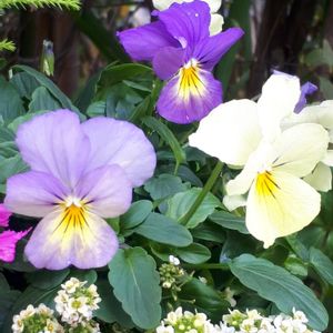 左:ビオラ 'ノベル 天使の誘惑' 右:ビオラ 'ノベル 気まぐれロージー 花色が咲き進むにつ入れ変化するシリーズです! 天使の誘惑はクリームイエローから薄いパープルに、 気まぐれロージーは白からローズ色に変化します。* '