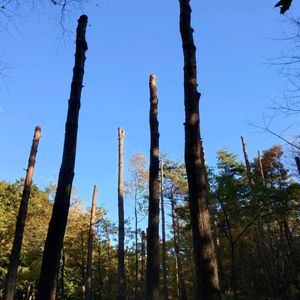何時もウォーキングをしている、南箕輪村の大芝高原のセラピーロードの、赤松の上部が伐採(多分、松食い虫対策⁉️⁉️)されて、御柱状態(諏訪市の御柱祭り)になっています‼️ まだ根元は地面に付いて居るので、この後はどうなるか😅⁉️⁉️