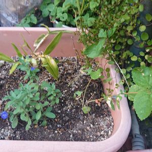アメリカンブルーの挿し木ちゃんにお花が咲いてました🙌 右側の子も挿し木ちゃんのコバノランタナ。 ピンチした子で増やせると楽しみが増える🤗