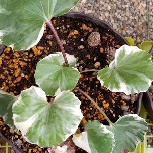 おはようございます☁️ 錦の日参加させていただきます🍃 大好きな斑入りの葉っぱ 🌱 集めてみました😊💕 ↖️上に誘引し、下には垂れさげだいぶ いい形になってきました。 ↗️最近仲間入りしたギボウシ✨ 🔵斑入りツワブキ 緑濃く丈夫な優等生。 ↙️斑入りのミスヒキソウ 昨年 お友達からいただき やっと元気に 動き出しました。 ↘️斑入り野葡萄 紫色の茎と斑入りの葉っぱがツルをお互 いに巻き付けあいながら支え合ってま す。