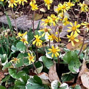 ツワブキの花🌼 もうそろそろ終わりが見えてきた😓 でも!斑入りの葉っぱが、雪に埋もれるまでは楽しませてくれます🤗