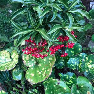 これも通院の帰路余所のお宅の庭に植栽されていました。 斑入りです。葉が艶々と綺麗でした。