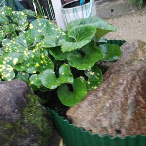 ツワブキの斑入り この模様… ずっと観てるとなぜか浮遊感に襲われる… 不思議な感覚(*^_^*)