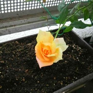ミニバラ、コルダナシリーズ、「マラクジャ」 小さい苗のとき うどんこ病にかかり、かなり薬剤を撒いて手間をかけた子。やっと一輪だけ咲かせてくれました😊