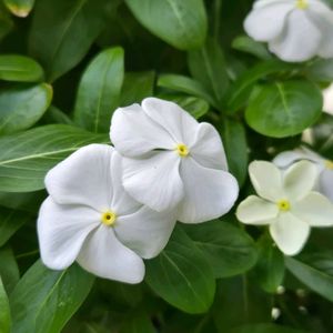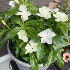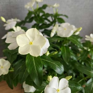 こんばんは🌟 うまく撮れなかったけど ビンカ・ゆずあいす(上の丸い花弁)と フェアリーミント(下のシャープな花弁) 3年目のフェアリーさんも咲いてきました🌼 そろそろ2品種とも✂️かな~