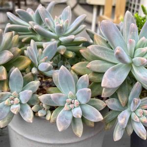オーロラブルー いただき多肉ちゃん♡ 元気に夏越ししていますよ〜🙋♀️ お粉っ子は薬跡が目立ちますね👀