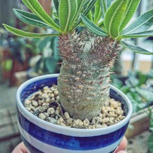 【暗黒宮】 〈特徴〉 パキポディウム型 トリプルヘッド シルバーの葉脈、針 全ての葉っぱの裏がダークサイド(暗黒色) 暗黒高級ウール地のピンストライプ 妄想系😆 #11/21(土)夜にショップに新作アップします🌵