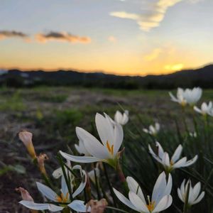 おはようございます☀ 昨日の夕焼けが教えてくれた通り 今日も気持ちよく晴れてます😃😄🔆🎶 山際で輝く夕日に希望を感じ お疲れ様と癒されて 白い花は疎らに咲いていた 真っ白で清らかな花びらは 汚れの無い無垢な感じが好きです😊 黄色い蕊は元気の源💪🏻 くじけない強さを与えてくれる✨ 昨夜に引き続き夕景と花 珠簾❀✨