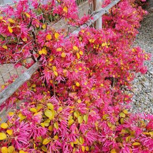 紅花トキワマンサク 急に秋がやってきました 濃いピンクのお花が 咲いてくれました この子は元々は鉢植えでしたが 鉢底穴から地面に根を 伸ばしノビノビと健やか です🧡