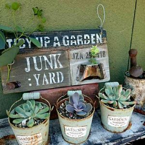 昨日は、名古屋で開かれた 多肉とみどりのマルシェに行ってきました❣️ picは昨日の戦利品です💕 YOU-ZENさんの雑貨が70%offでした💕 ブリキのバケツ鉢 白い木製の台 izumiさんのヘチマのガーランド ikuraさんの木製鉢 コッツンさんのハピコロちゃん 一番嬉しかったのは、 ジャンク雑貨のAYUM iさんの鉢に botanさんが寄せ植えしてくれるんです💕 AYUM iさんと写真まで撮っていただき 感激です❣️ カッコいい〜(ू ˃̣̣̣̣̣̣o˂̣̣̣̣̣̣ ू)♡︎ botanさんの寄せ植えは 食いつくように見てしまい 緊張する〜って言われてしまいました💦笑笑 色々GSの方にお会い出来たり 楽しい一日でした❣️