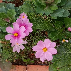 秋桜と葉牡丹 センター内の花壇の寄せ植え 秋桜の花葉と葉牡丹の葉の 取り合わせが素敵でした