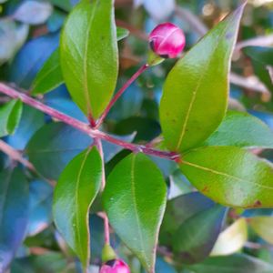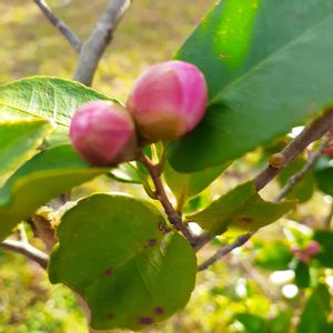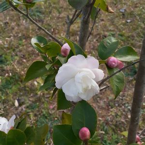 椿 シナモンシンディ 可愛い丸い蕾をたくさんつけていました 花はシナモンのような香りがするそうです 花が咲くのが楽しみ…