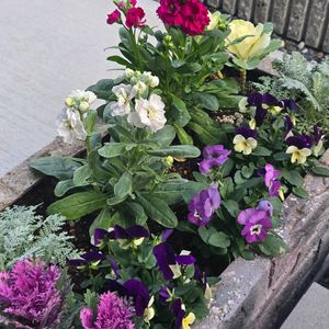 玄関脇のプランター 葉牡丹 ストック ビオラ シルバーリーフ 寄せ植えにして1月程… 日当たりの悪い場所で、頑張っています𖧷⁺.˖*ꕤ˖*𖥧𖧧 ˒˒. お花に(*u᎑u)感謝